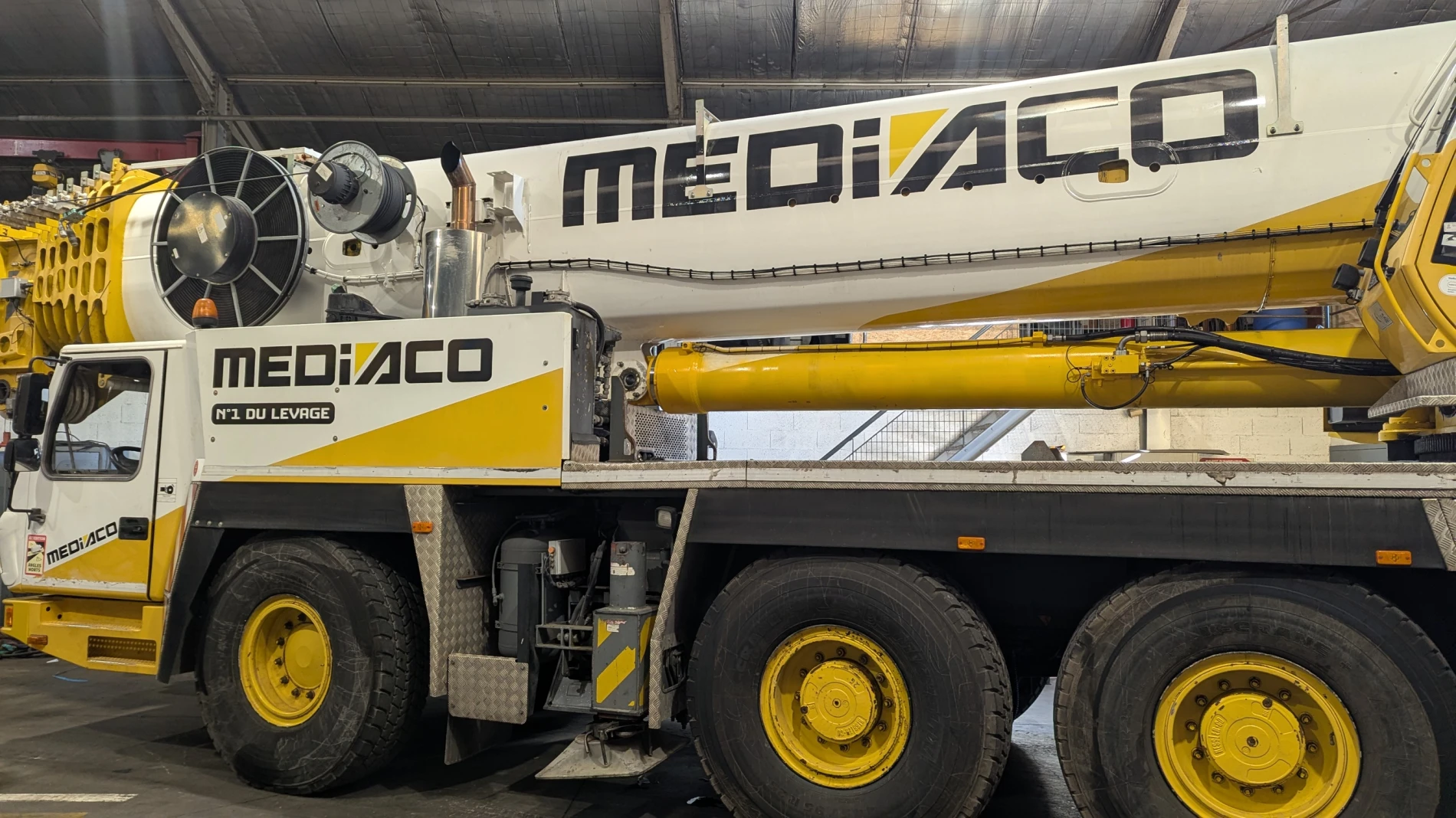 Mise à jour de la signalétique MEDIACO sur la flotte de véhicules (grues, voitures, nacelle...) directement sur site